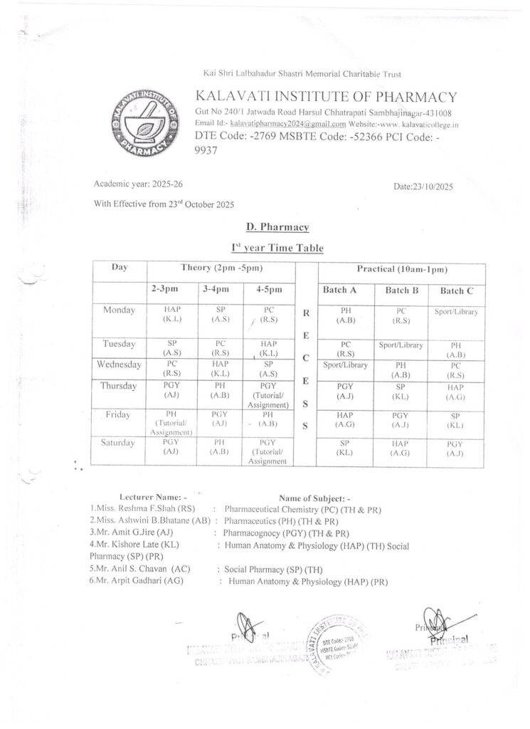 Time Table For 1st year Student